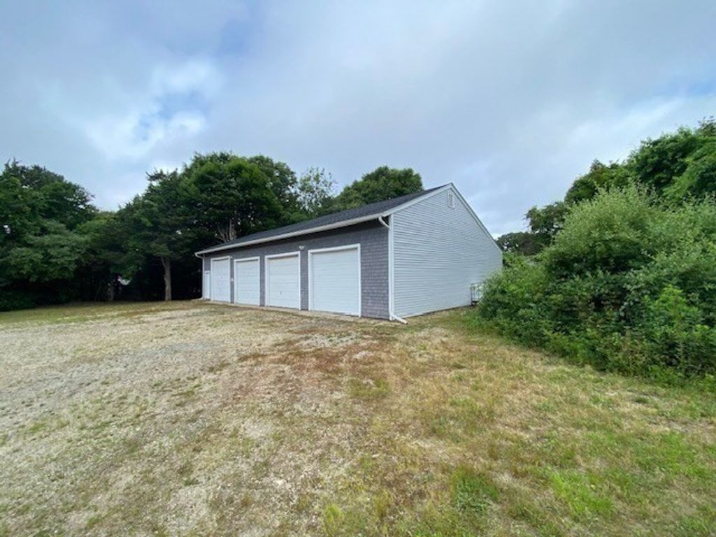 Property will be delivered vacant. East Falmouth home with lower-level apartment and separate recently reconstructed 4-bay garage for storage, contractors, car/boat enthusiasts. One acre of land abutting conservation land with water access. Currently set up as two bedrooms upstairs and one bedroom downstairs, previously as two bedrooms downstairs. Buyers could explore a separate ADU with its own driveway or convert the garage. Attic could be converted to livable space. Many recent improvements including lower unit renovation, kitchen/bathroom (2024) new heating system, tankless hot water system (2022), reconstruction of four bay garage with new siding, electrical, roof, insulation, interior renovation (2025). Property is zoned residential.