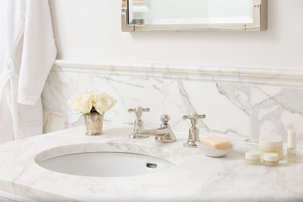 Exceptional southwest-facing corner home at the iconic Heritage on the Garden, offering nearly 1,900 sq ft of refined living space. Thoughtfully reimagined through a complete gut renovation, this residence combines timeless elegance with modern sophistication. A formal foyer opens to a sun-drenched living and dining area with a stunning open-concept kitchen featuring a Calacatta Gold marble island, custom cabinetry, and Sub-Zero/Wolf appliances. The serene primary suite includes a spacious walk-in closet and spa-like bath, while the second bedroom offers bay windows and an en-suite bath. Additional highlights include generous closet space, a private balcony, garage parking, and a storage unit. Perfectly positioned across from the Public Garden, The Heritage provides 24-hour doorman, concierge, and majordomo services, plus a fitness center and two-story resident lounge. A premier opportunity for luxury living in Boston’s most desirable location.