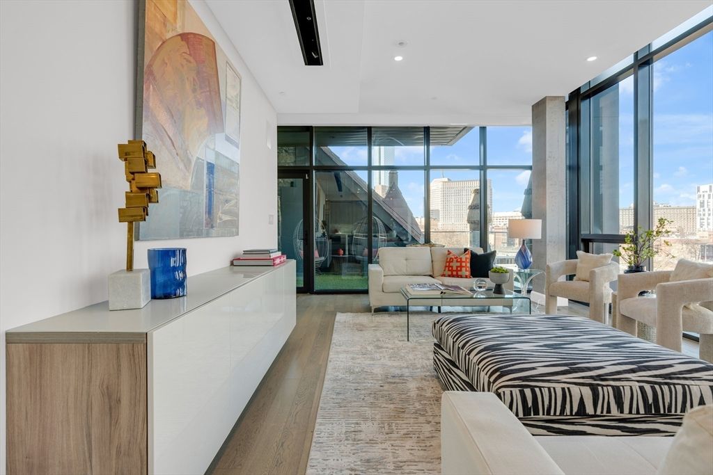 Rare single floor townhouse alternative now available in this direct elevator access 4 bed/3-1/2 bath residence at the Lucas. Spectacular corner exposure LR/DR with floor-to-ceiling windows, gas FP and door to large terrace with skyline views. Open, high-end center-island kitchen features Subzero, Wolf and Miele appliances and abundant counter and cabinet space. Adjacent powder room is just steps away. The enormous primary bedroom offers a huge fully built-out walk-in closet, ceramic tile and marble bath w/double sinks, walk-in shower and soaking tub as well as a second south facing terrace w/water and gas, perfect for grilling. Three additional family bedrooms, two of which share a dual access connecting bath and one fully en-suite. W/D, central A/C, hdwd flrs and ample storage throughout. Enjoy concierge service and access to residents' lounge, courtyard, fitness center and pet spa. Includes garage parking spaces 19 and 20. Close to the South End's finest restaurants, shops and more!