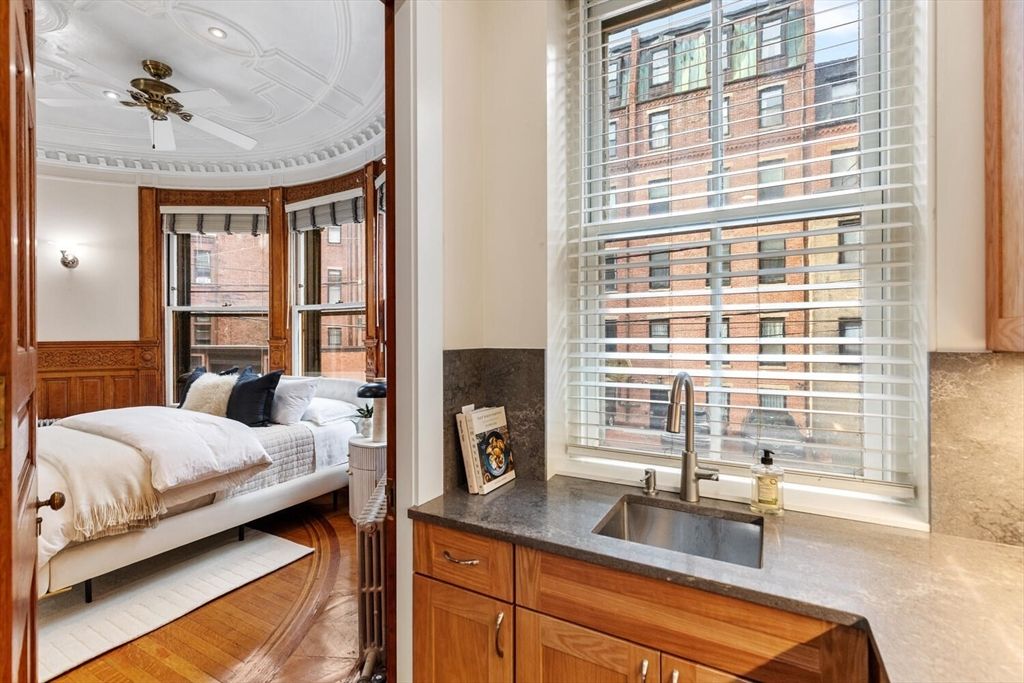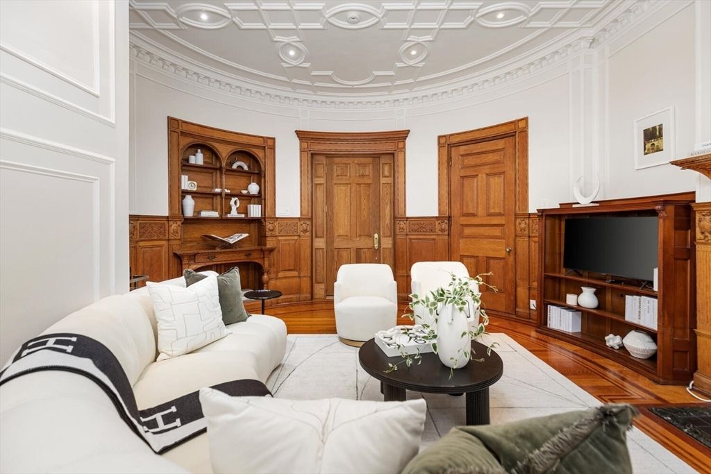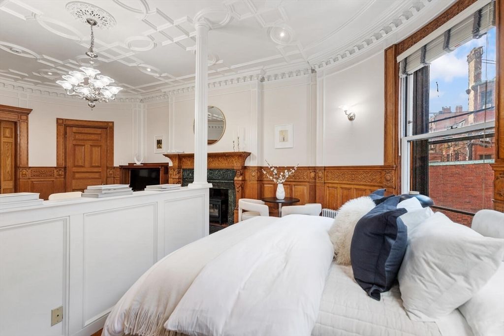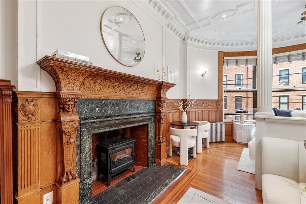 Step into the former grand parlor of a Back Bay mansion designed by architect Charles Brigham, reimagined for modern living. Built in 1887 for Henry Austin Whitney, a prominent shoe manufacturer & railroad executive, 261 Marlborough is a French Academic-style brownstone steeped in Boston’s history. This 640 sq. ft. studio, once part of the Whitney family’s home, still showcases ornate millwork, a monumental fireplace, and ceiling medallions that once hosted the city’s Gilded Age elite. Now transformed with a chef’s kitchen featuring bespoke cabinetry, quartz counters, and under-cabinet lighting, plus a spa-inspired bath with rainfall shower & clawfoot tub, the residence blends history with luxury. With soaring ceilings, abundant natural light, and potential to convert to a 1-bedroom, it offers rare appeal. Perfectly set between Fairfield and Exeter Streets, just blocks from the Public Garden and Commonwealth Mall, it places you in the heart of Back Bay.