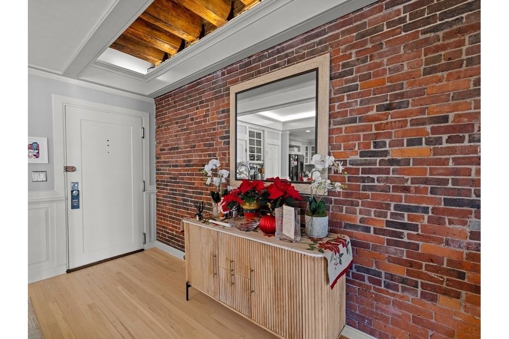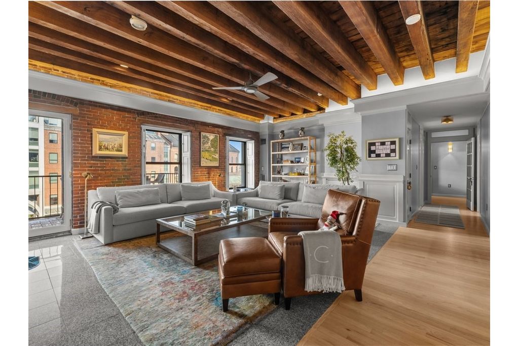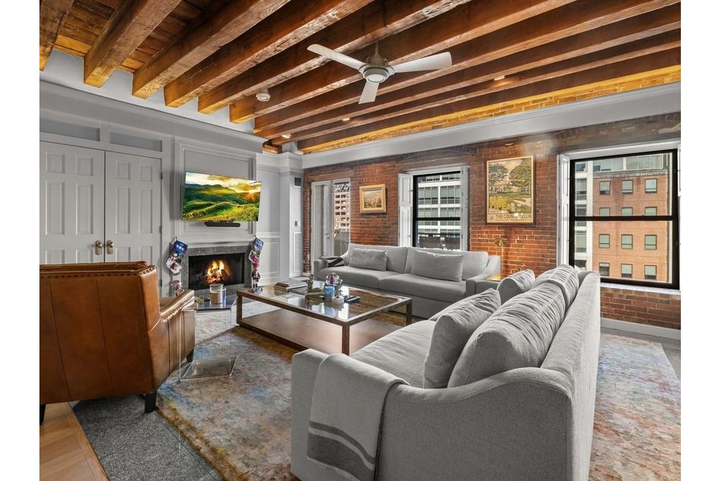 Breathtaking Lewis Wharf 2-bedroom + office/den , 2 full baths, one floor living, featuring harbor views, exposed brick and beam, a private terrace, and a wood-burning fireplace. Functional open floor plan perfect for entertaining. Renovated in 2019 and hardwood floors sanded and finished in 2025. Smart home appliances and new windows throughout. The kitchen has a double oven, ample storage, and a separate dining area equipped with a beverage fridge and bar. The primary bedroom has plenty of closet space and has a a luxurious bath, soaking tub, separate stall shower and linen closet. The second bedroom offers comfort and ample closet space. A third bonus room serves as an office, den or guest room; custom office desk area has been installed for those who work from home. In-unit laundry and all utilities included in the monthly condo fees. The residence offers 24-hour concierge service, a heated outdoor pool, elevator access, and a well maintained garden/green space. Waterfront Oasis!