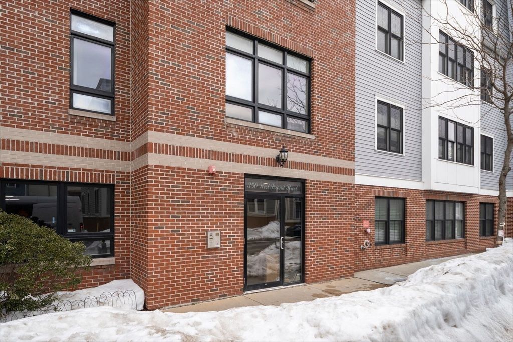 Bright and spacious 2-bedroom, 2-bath front-facing unit located on the second level in South Boston’s desirable West Side. With plenty natural light, this home creates a warm and inviting feel throughout. Features include stainless steel appliances, granite counter tops, hardwood and tile floors, central air, in-unit laundry, and elevator access. The primary suite offers a walk-in closet and en suite bath with double vanity. The open layout provides comfortable living and entertaining space. Additional highlights include one heated and deeded garage parking space and a large storage closet conveniently located across from the unit. Low HOA fees add to the value. Conveniently located with easy access to Frontage Road and major highways, and less than one mile to Broadway Station, restaurants, and neighborhood amenities. Castle Island Seaport District and South Boston Waterfront are all in close proximity.