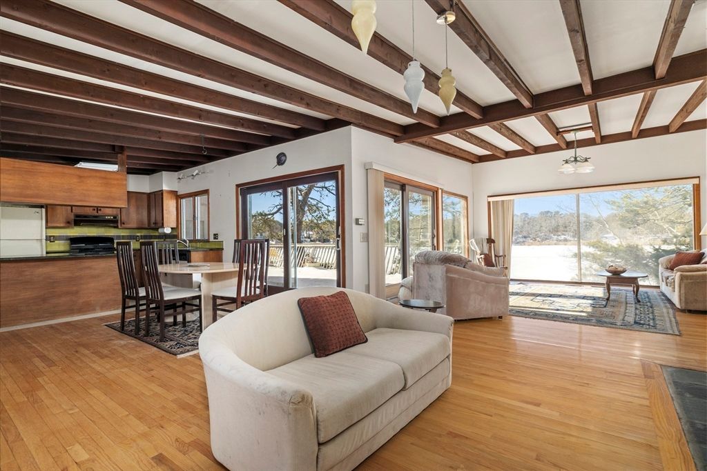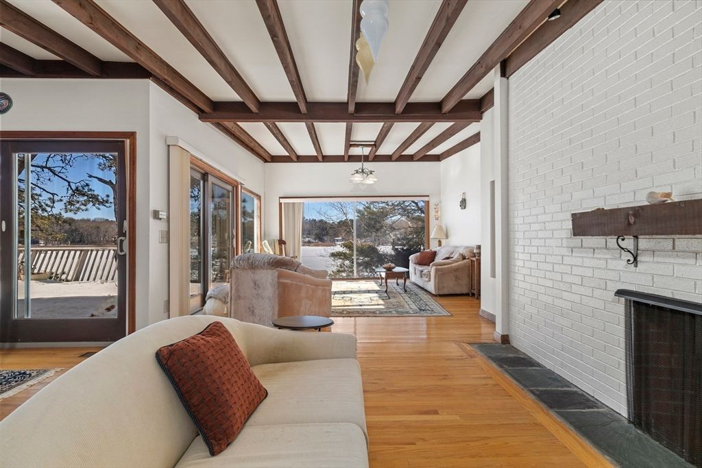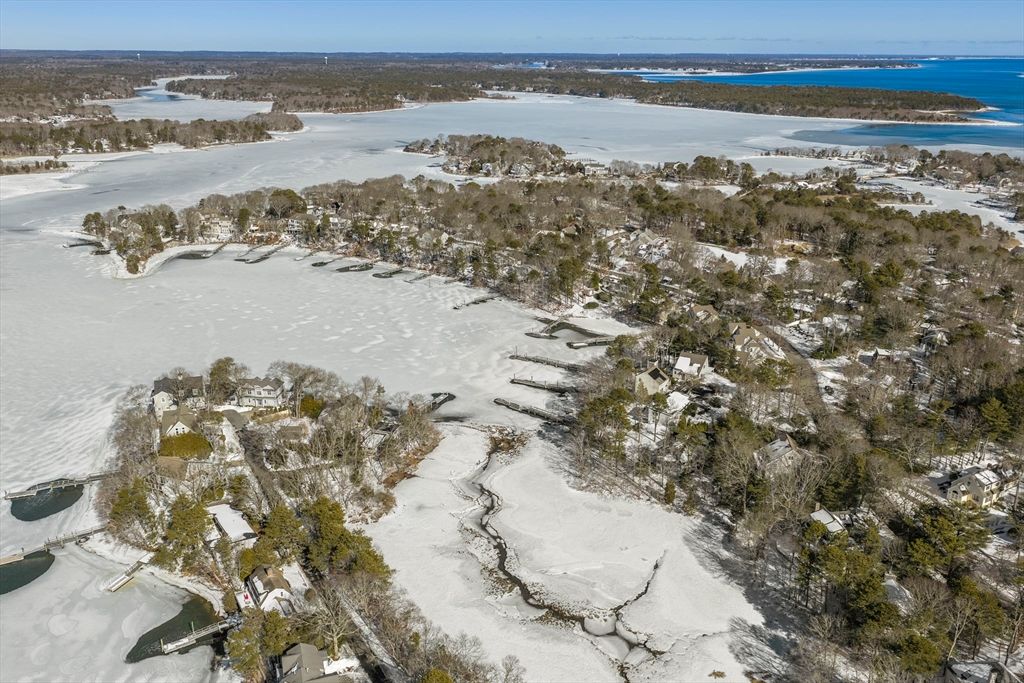 Welcome to your waterfront retreat in the highly sought-after Summersea neighborhood of New Seabury, located in the charming coastal town of Mashpee on beautiful Cape Cod. Perfectly positioned on a quiet dead-end street in a peaceful woodland setting, this exceptional home overlooks scenic Ockway Bay and offers stunning water views from nearly every room. Floor-to-ceiling windows throughout flood the open floor plan with natural light, seamlessly blending indoor and outdoor living while showcasing the breathtaking surroundings. Step outside to an expansive rear deck—ideal for entertaining, relaxing, or soaking in the tranquil bay views. Your private dock provides direct water access, making this a dream property for boating enthusiasts and nature lovers. The versatile walkout lower level features a family room, three bedrooms, a full bath, and abundant storage space—perfect for large family and guests. New Seabury offers it's residents amenities, association benefits and luxury living.